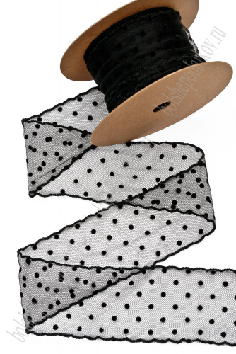 Лента декоративная "Горошек" 5,5 см*10 ярд (SF-7310) черный