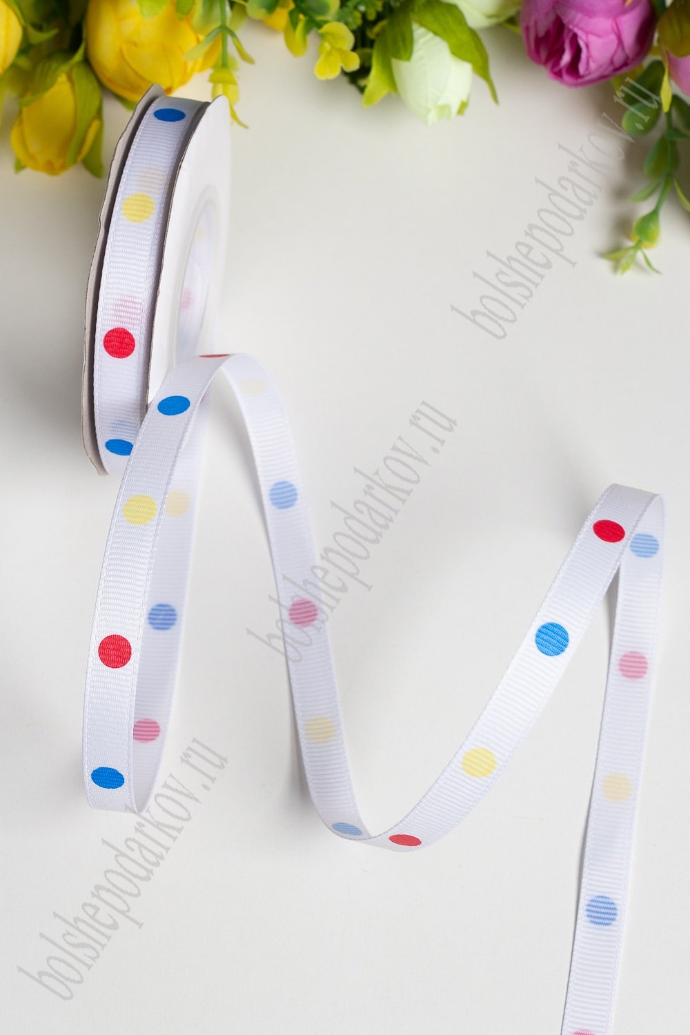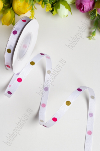 Лента репсовая 1 см*20 ярд "Разноцветный горох №2" SF-1725