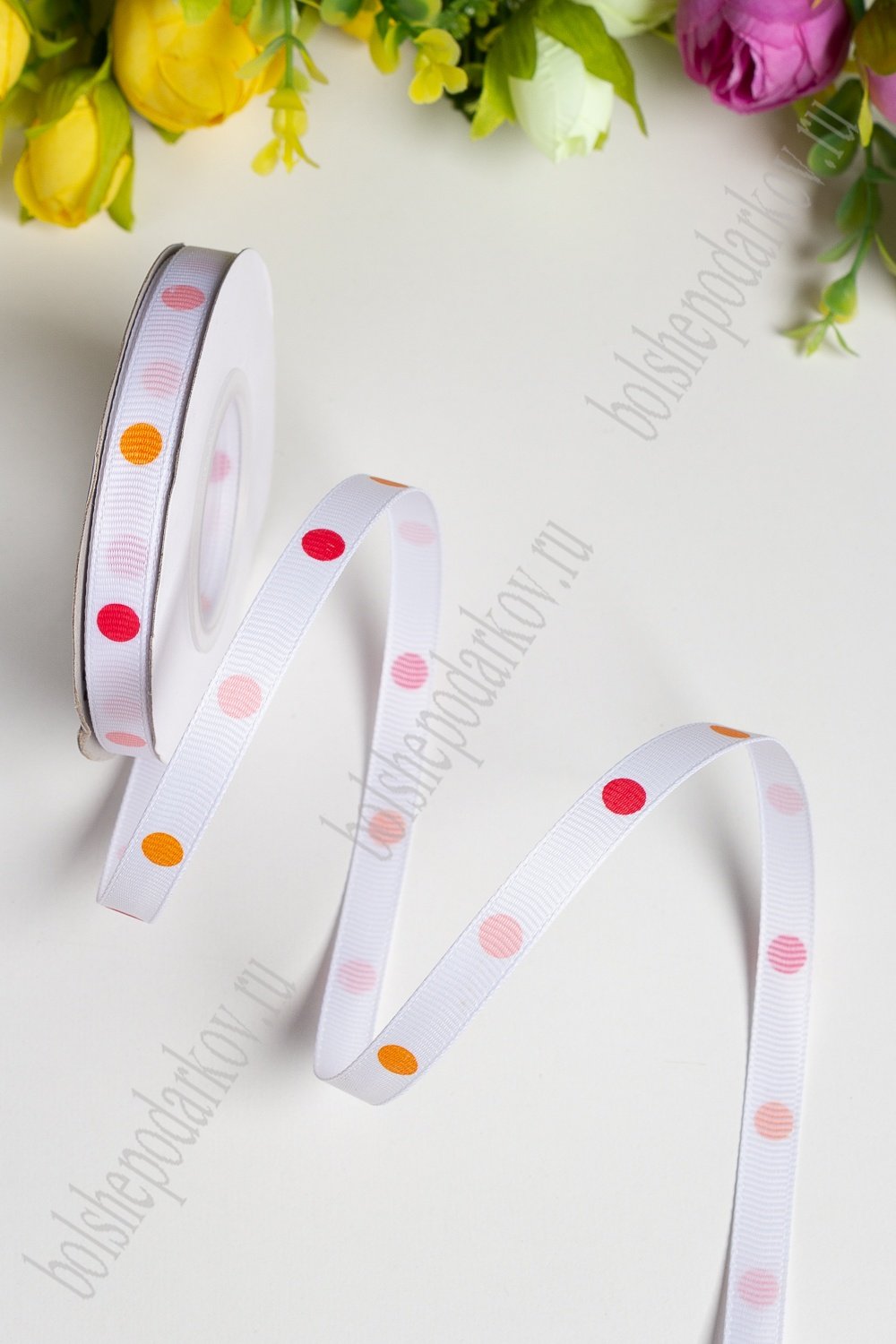 Лента репсовая 1 см*20 ярд "Разноцветный горох №3" SF-1725