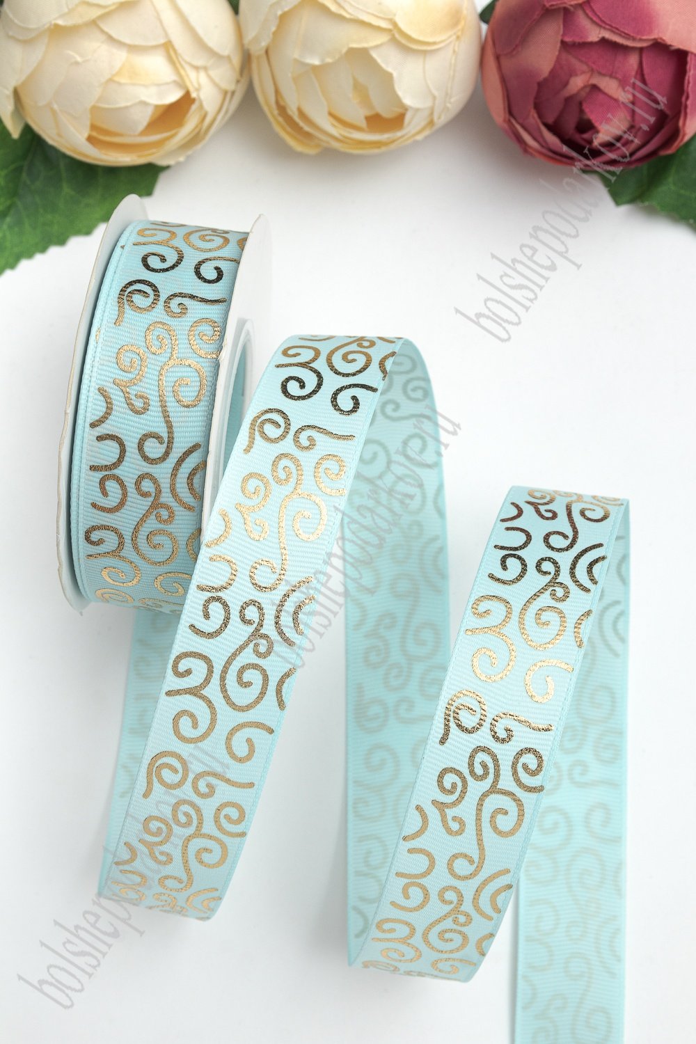 Лента репсовая 2,5 см*20 ярд "Узор" SF-5852, голубой/золото №11