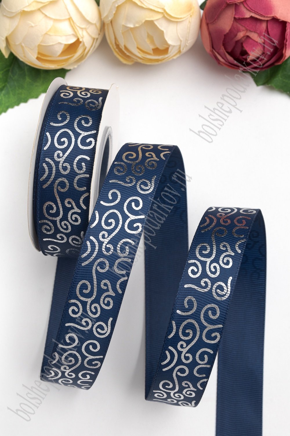 Лента репсовая 2,5 см*20 ярд "Узор" SF-5852, темно-синий/серебро №38