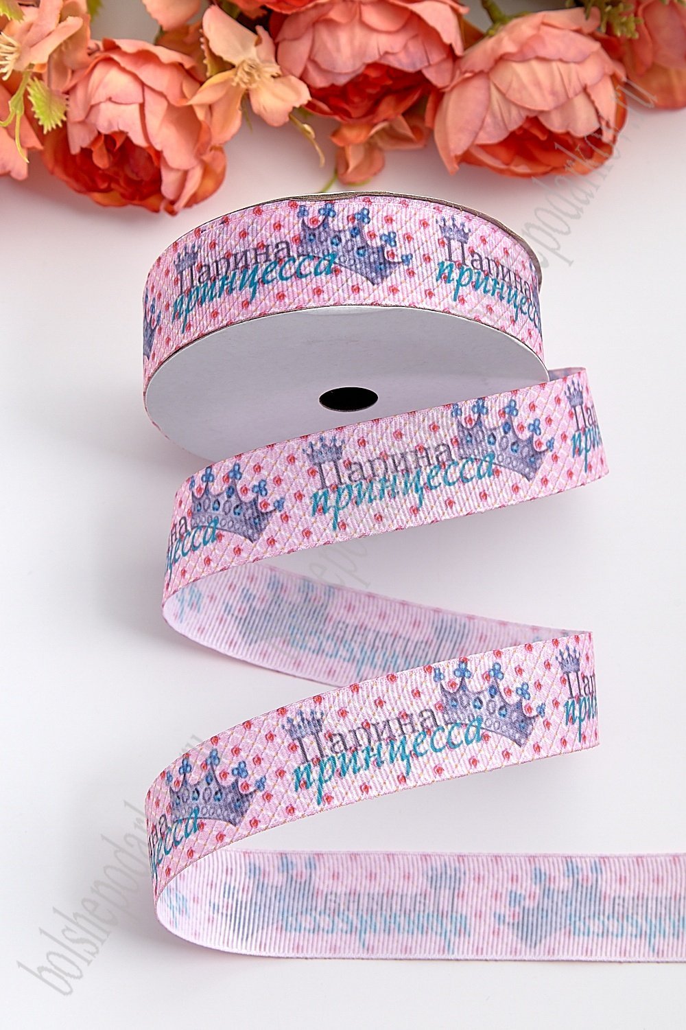Лента репсовая 2,5 см с надписью "Папина принцесса" SF-3892