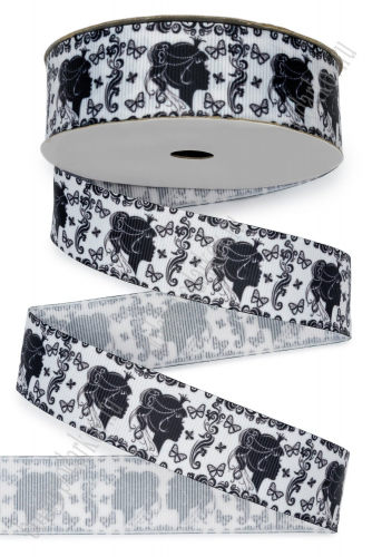 Лента репсовая 2,5 см с рисунком "Кружево, девушка" SF-1729