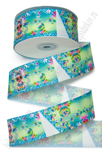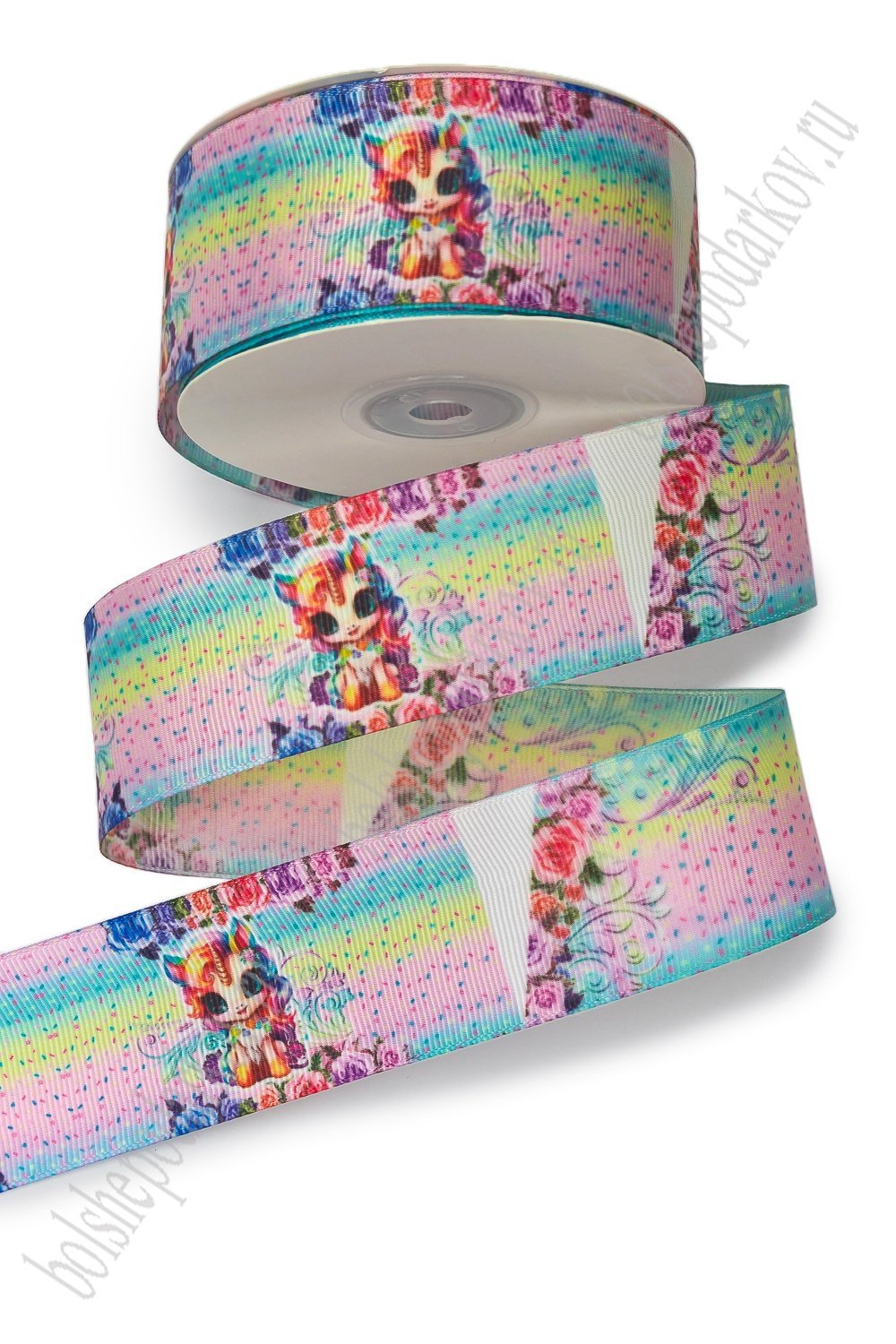 Лента репсовая 4 см*25 ярд с рисунком "Единорог" SF-7480
