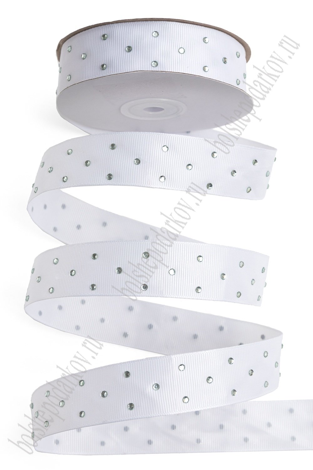 Лента репсовая со стразами 2,5 см*20 ярд (SF-7026) белый №01