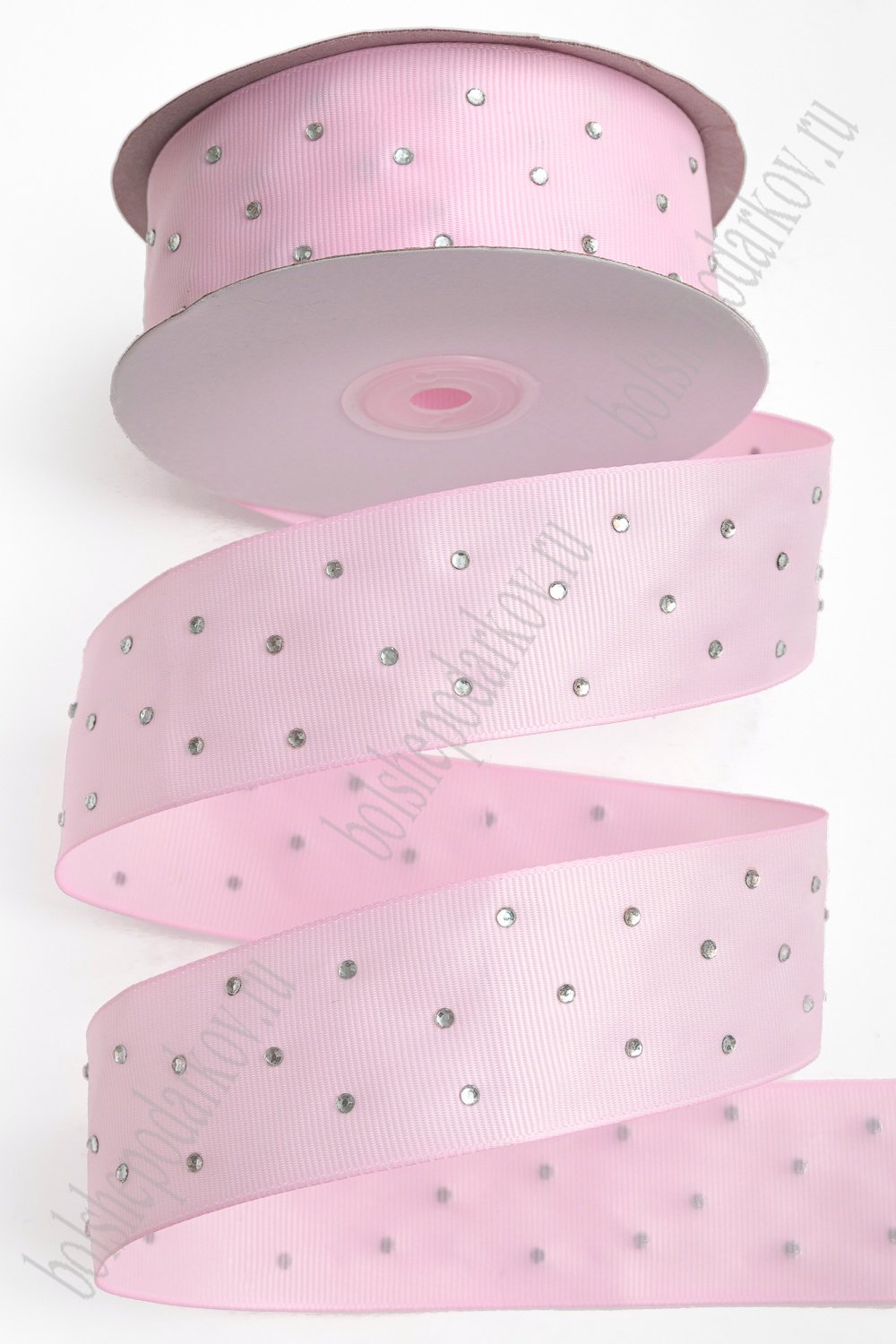 Лента репсовая со стразами 4 см*20 ярд (SF-6072) розовый №04