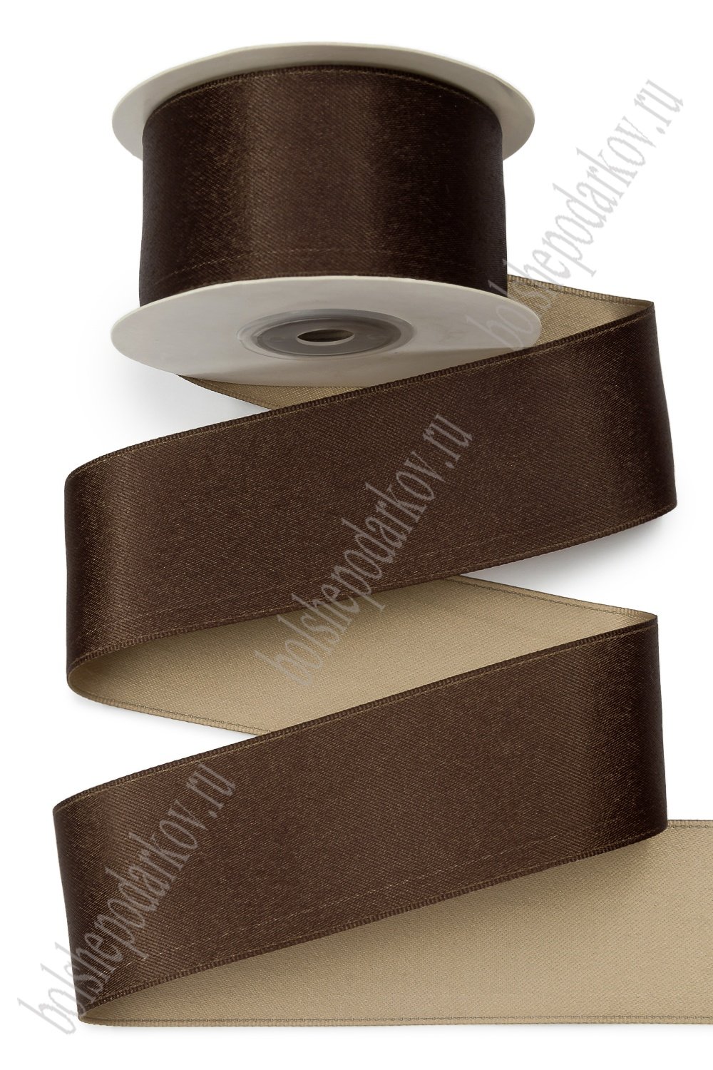 Лента сатиновая двусторонняя 4 см*10 ярд (SF-7777) темно-коричневый/коричневый №31 УЦЕНКА