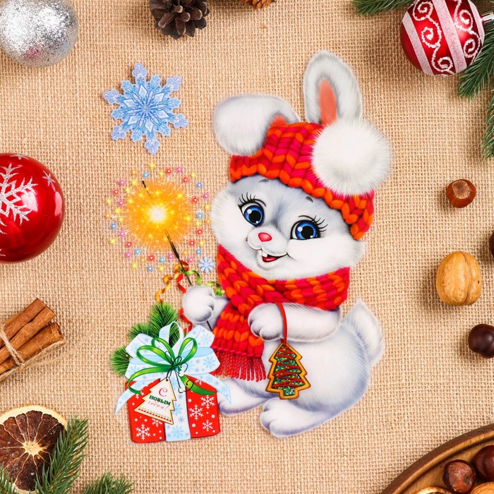 Наклейки новогодние «Поздравления от зайки» 33.5×24 см
