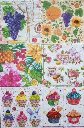 Салфетки 5 видов - трёхслойные и один вид (гроздь винограда) - двухслойные