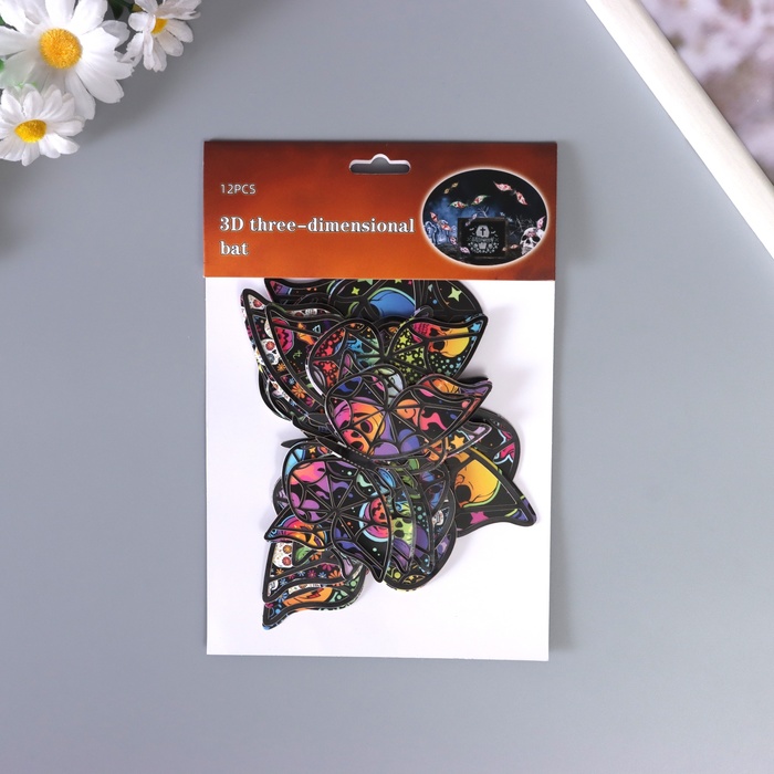 Наклейка бумага, пластик «Бабочки на Хэллоуин», чёрные, набор 12 шт.