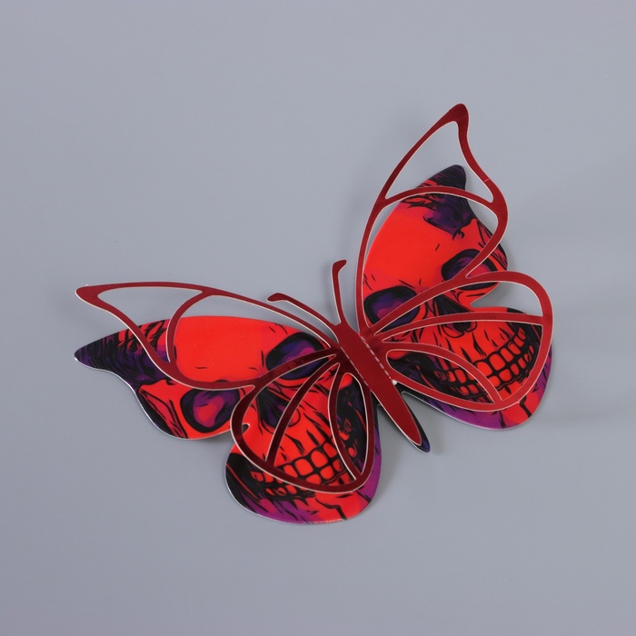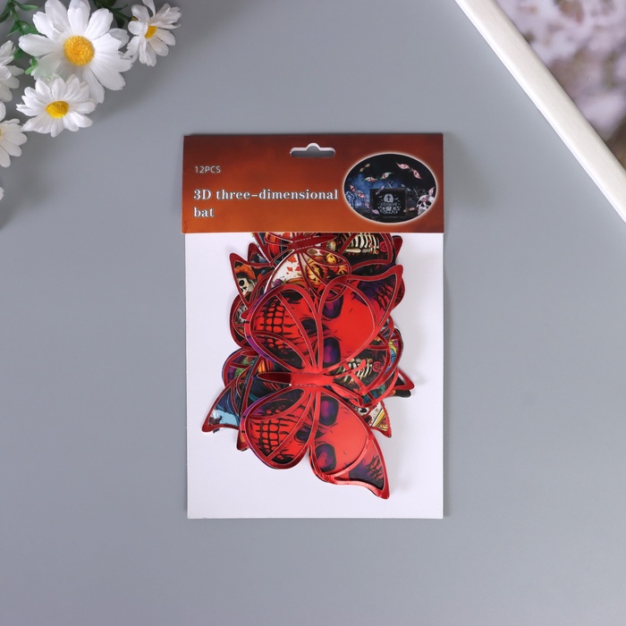 Наклейка бумага, пластик «Бабочки на Хэллоуин», красные, набор 12 шт.