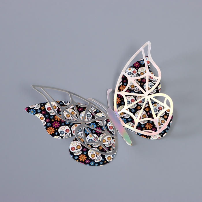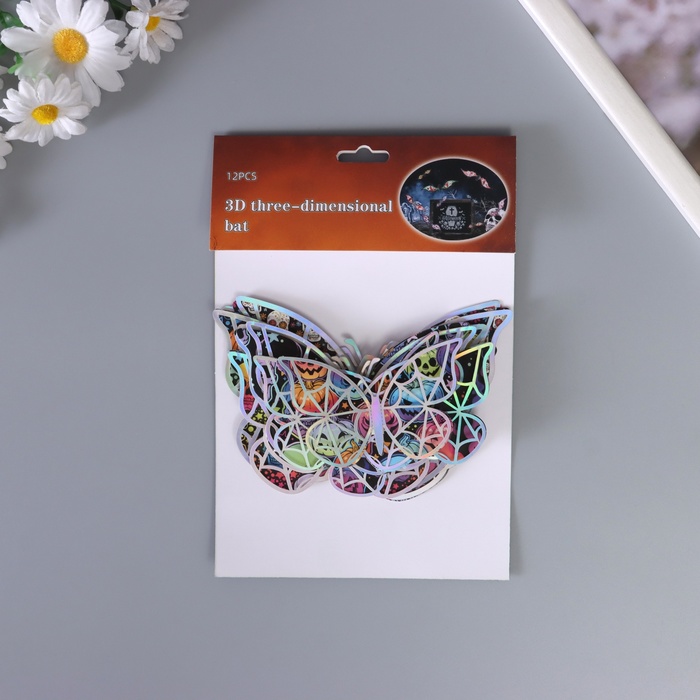 Наклейка бумага, пластик «Бабочки на Хэллоуин», серебро, набор 12 шт.