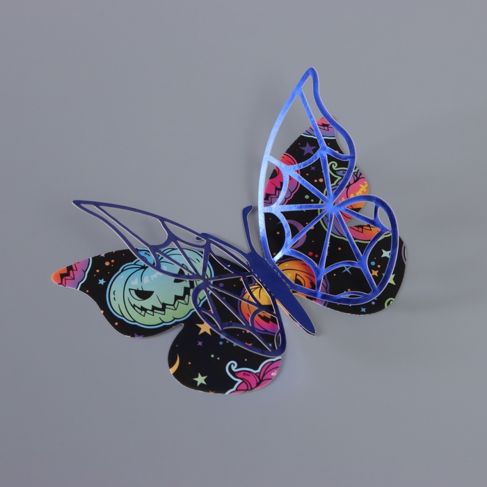 Наклейка бумага, пластик «Бабочки на Хэллоуин», синие, набор 12 шт.