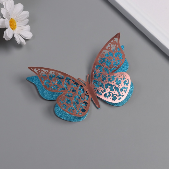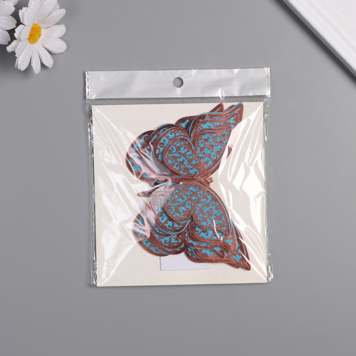 Наклейка бумага, пластик «Цветочные голубые бабочки», блёстки, набор 12 шт.: 12 см; 10 см; 8 см