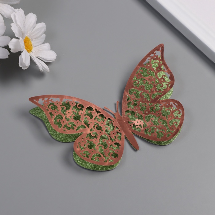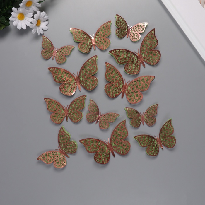 Наклейка бумага, пластик «Цветочные зелёные бабочки», блёстки, набор 12 шт.: 12 см; 10 см; 8 см