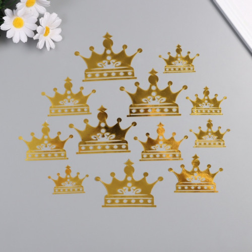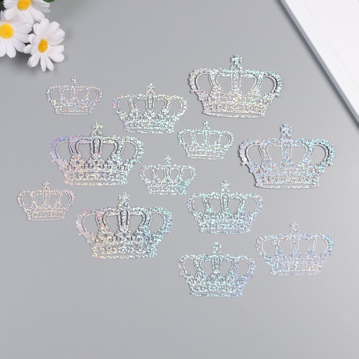 Наклейка бумага, пластик «Корона императора», голография серебро, набор 12 шт. 3 размера