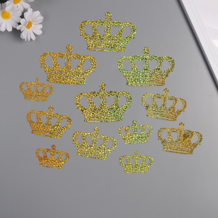 Наклейка бумага, пластик «Корона императора», голография золото, набор 12 шт. 3 размера