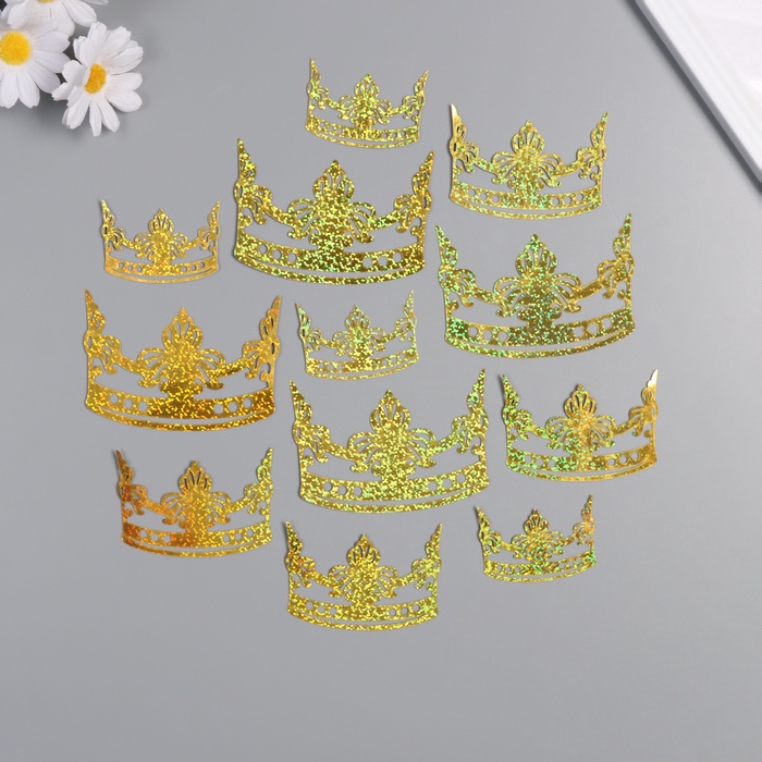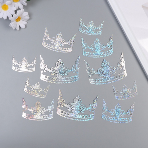 Наклейка бумага, пластик «Тиара», голография золото, набор 12 шт. 3 размера