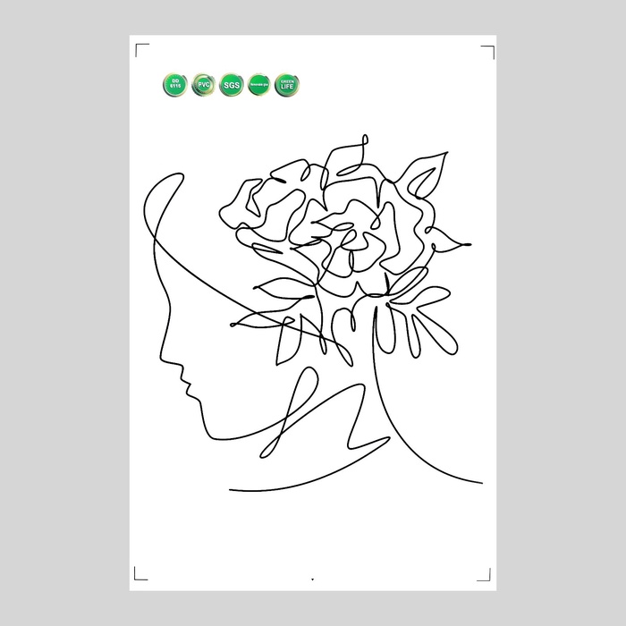 Наклейка интерьерная интерьерная чёрная «Абстракция. Девушка с цветами на голове», пластик, 40×60 см