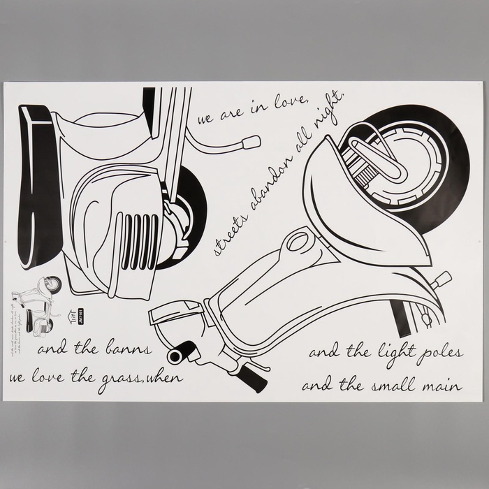 Наклейка интерьерная чёрная «Мопед», пластик, 60×90 см