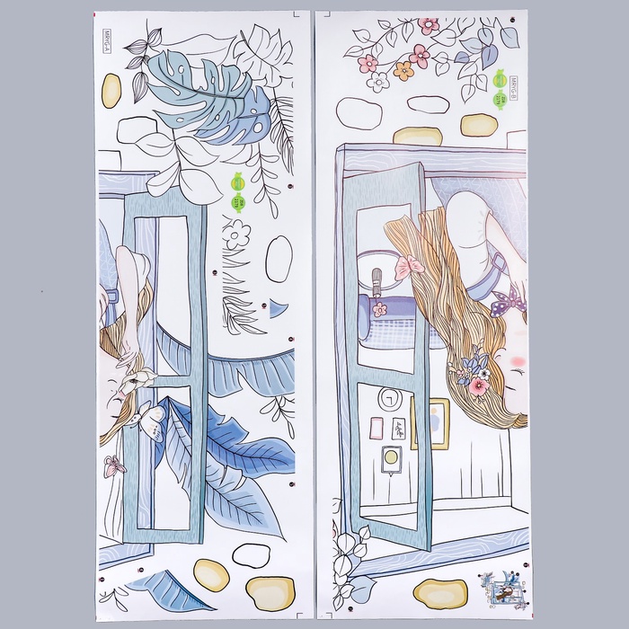 Наклейка интерьерная цветная «Девочка выглядывает из окошка», 30×90 см, набор 2 листа