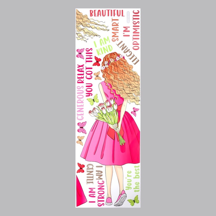 Наклейка интерьерная цветная «Девушка с тюльпанами», пластик, 30×90 см