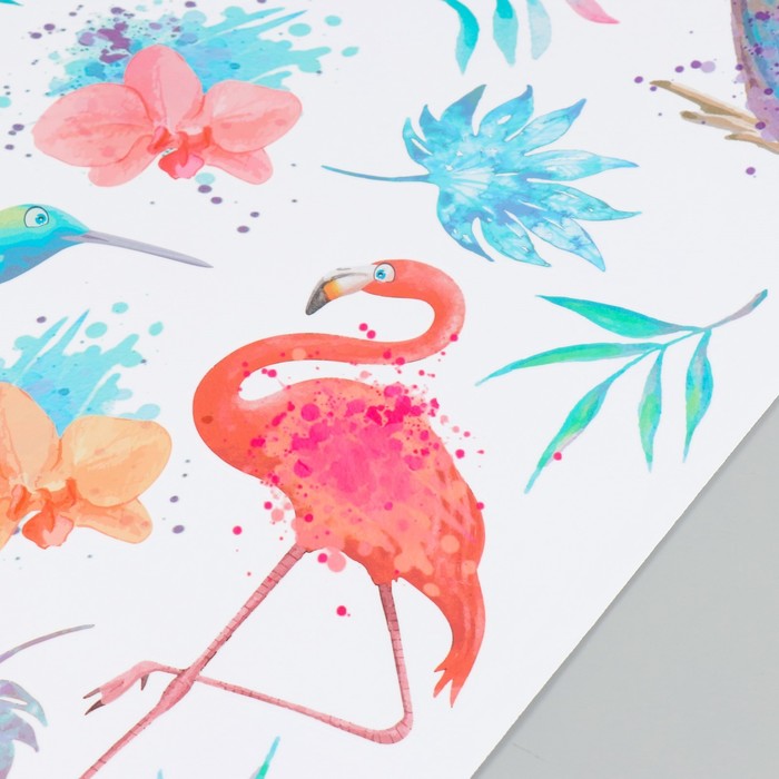 Наклейка интерьерная цветная «Экзотические птицы. Акварель», декор на стену, 50×70 см