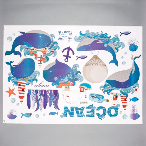 Наклейка интерьерная цветная «Киты в океане», 60×90 см