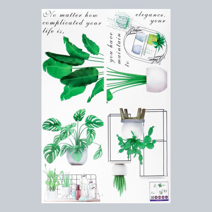 Наклейка интерьерная цветная «Комнатные растения», 60×90 см