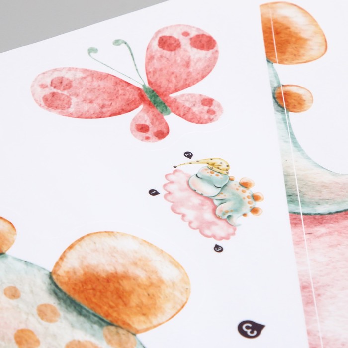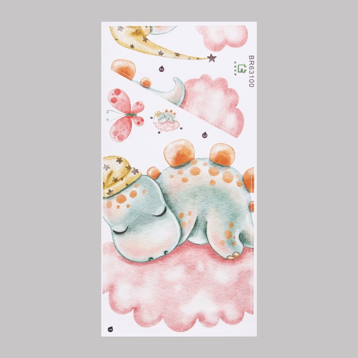 Наклейка интерьерная цветная «Малыш-стегозавр на облаке», пластик, 30×60 см