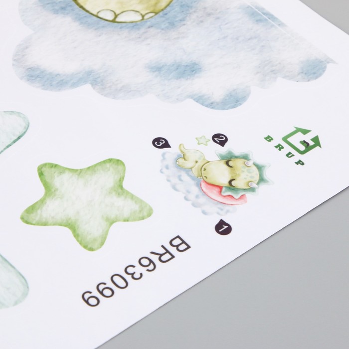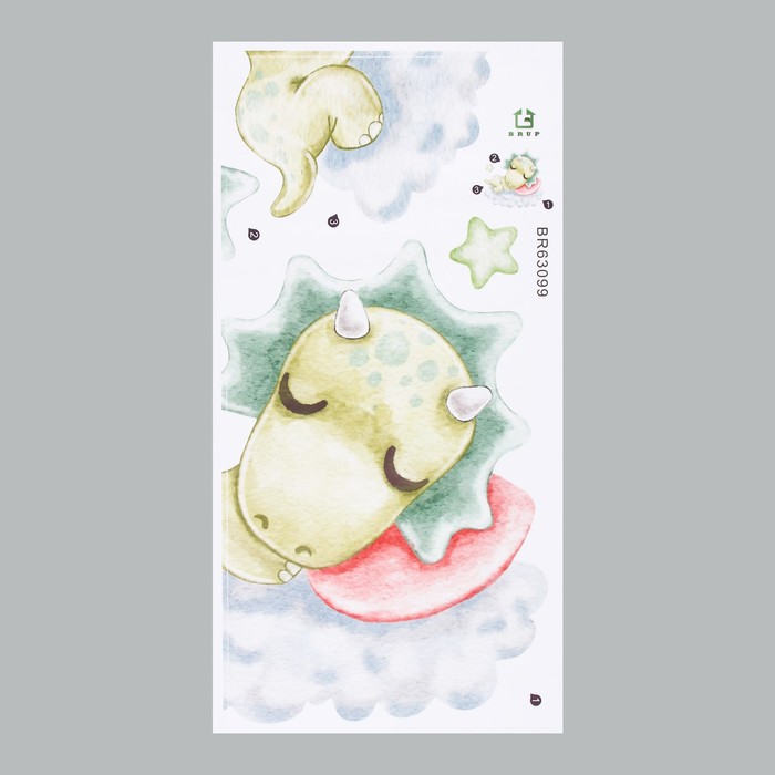 Наклейка интерьерная цветная «Малыш-трицератопс на облаке», пластик, 30×60 см