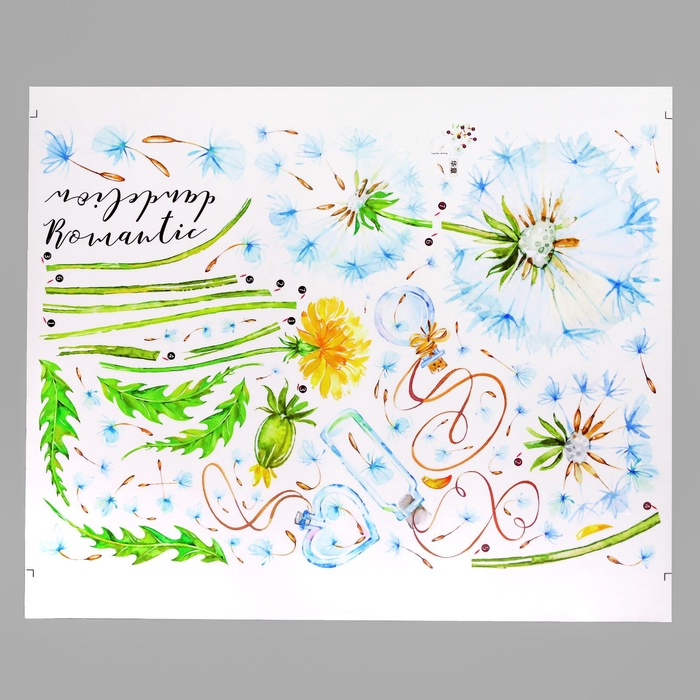 Наклейка интерьерная цветная «Одуванчики и бутылочки», пластик, 50×70 см