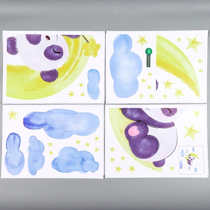 Наклейка интерьерная цветная «Панда на месяце», 25×35 см, набор 4 листа