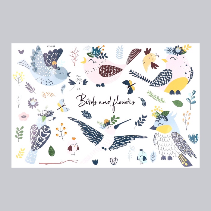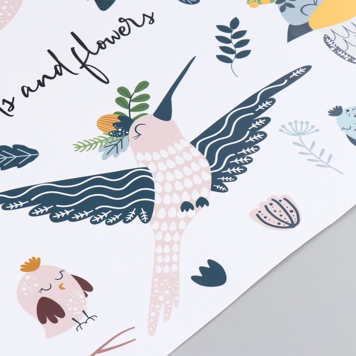 Наклейка интерьерная цветная «Птицы с цветочками на голове», пластик, 60×90 см