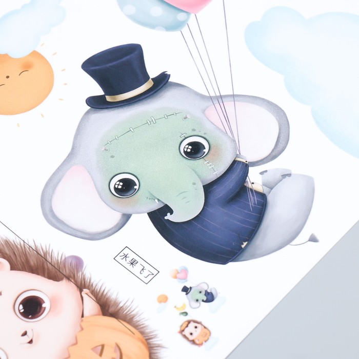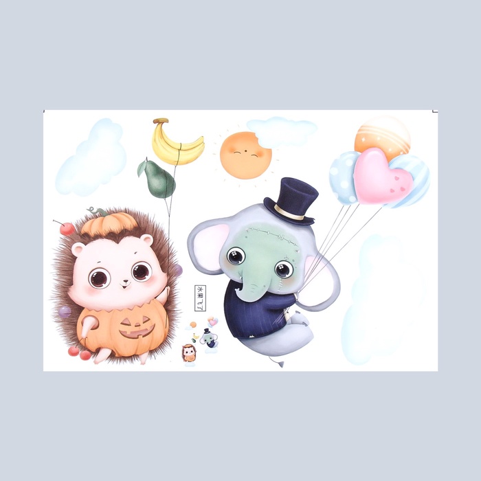Наклейка интерьерная цветная «Слонёнок и ёжик», пластик, 30×20 см