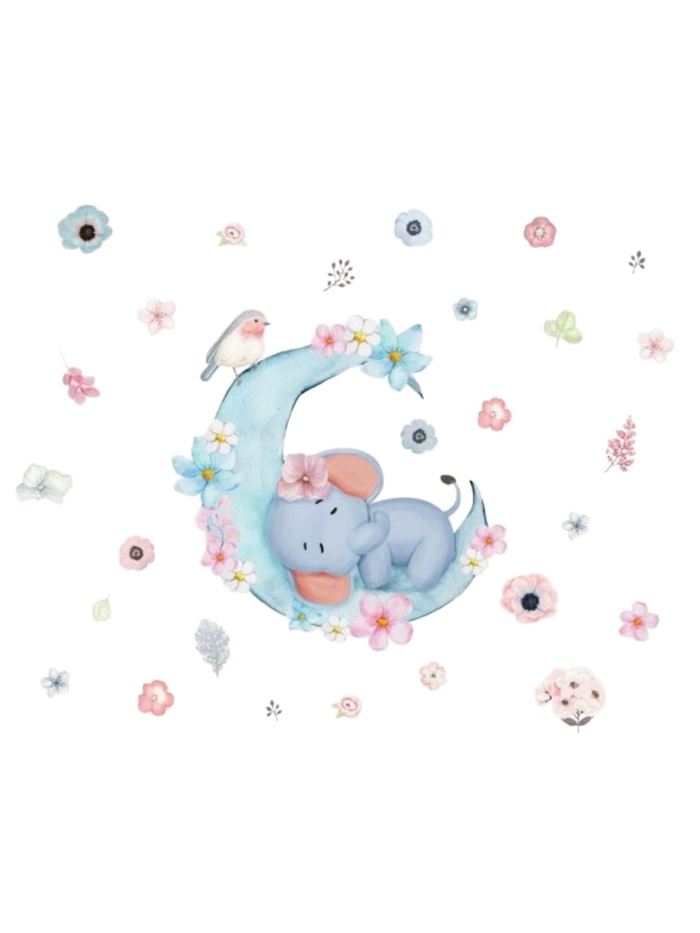 Наклейка интерьерная цветная «Слонёнок на месяце в цветах», 25×35 см, набор 4 листа