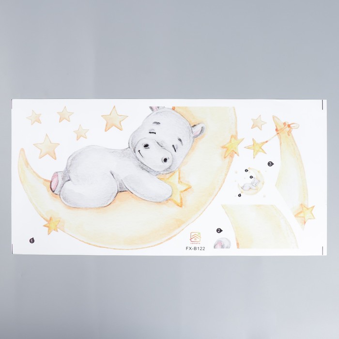 Наклейка интерьерная цветная «Спящий бегемотик на месяце», 30×60 см