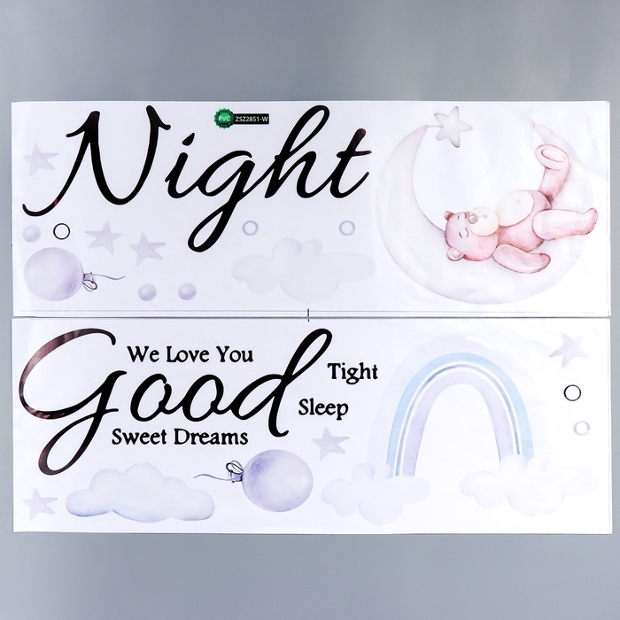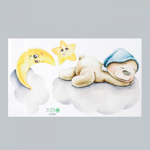 Наклейка интерьерная цветная «Спящий медведь на месяце», 25×70 см, набор 2 листа