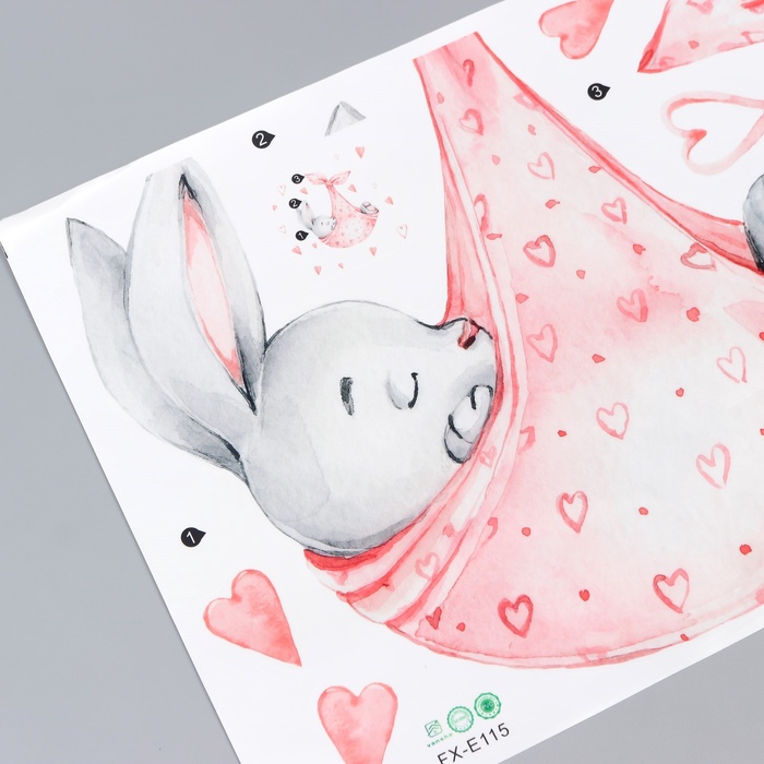 Наклейка интерьерная цветная «Зайка спит в пеленке», 35×60 см