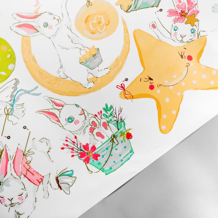 Наклейка интерьерная цветная «Зайки, воздушные шары и звёзды», 60×90 см