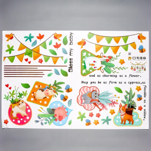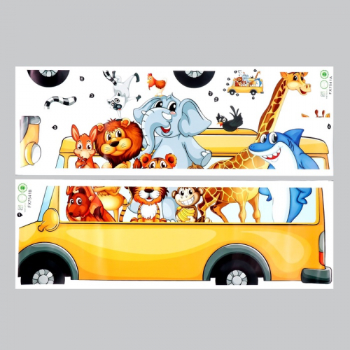 Наклейка интерьерная цветная «Зверята в автобусе», набор 2 листа, 25×70 см