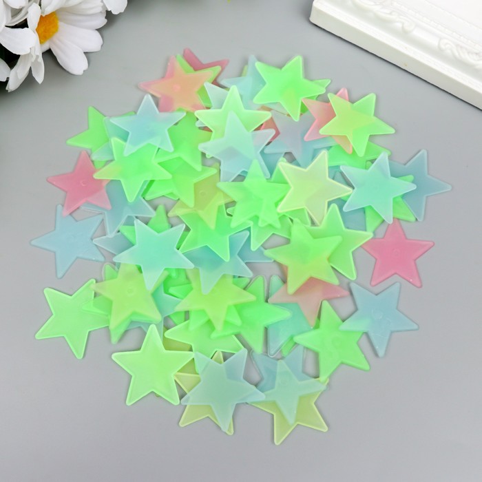 Наклейка интерьерная фосфорная пластик «Звёздочки», набор 50 шт., 17×12 см, МИКС
