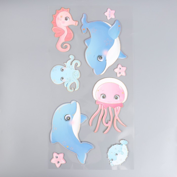 Наклейка интерьерная «Морские жители», декор на стену, 31×60 см