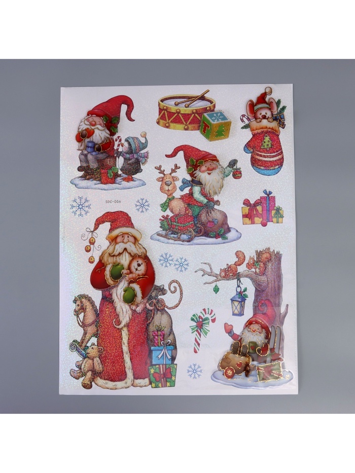 * Качественный пластик: Материал обеспечивает четкость изображения и стойкость цвета. Наклейка почти не выцветает и не теряет вид в течение всего праздничного сезона. При аккуратном удалении не оставляет следов.