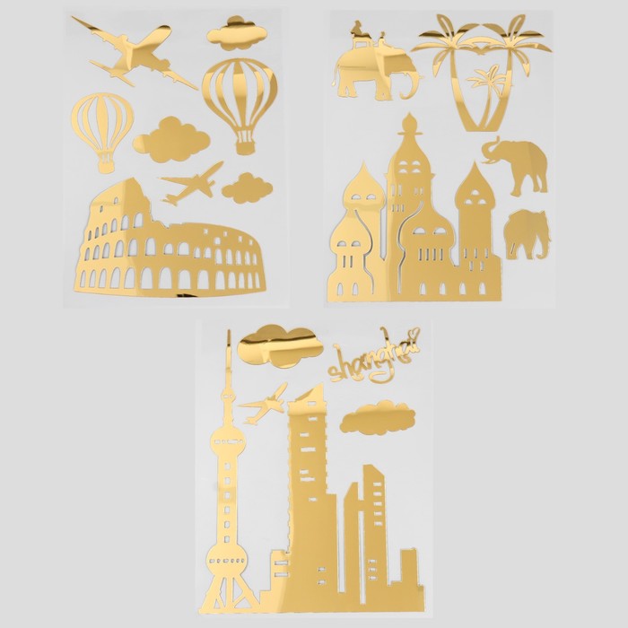 Наклейка интерьерная зеркальная «Путешествия», декор на стену, 31.5×41 см, МИКС