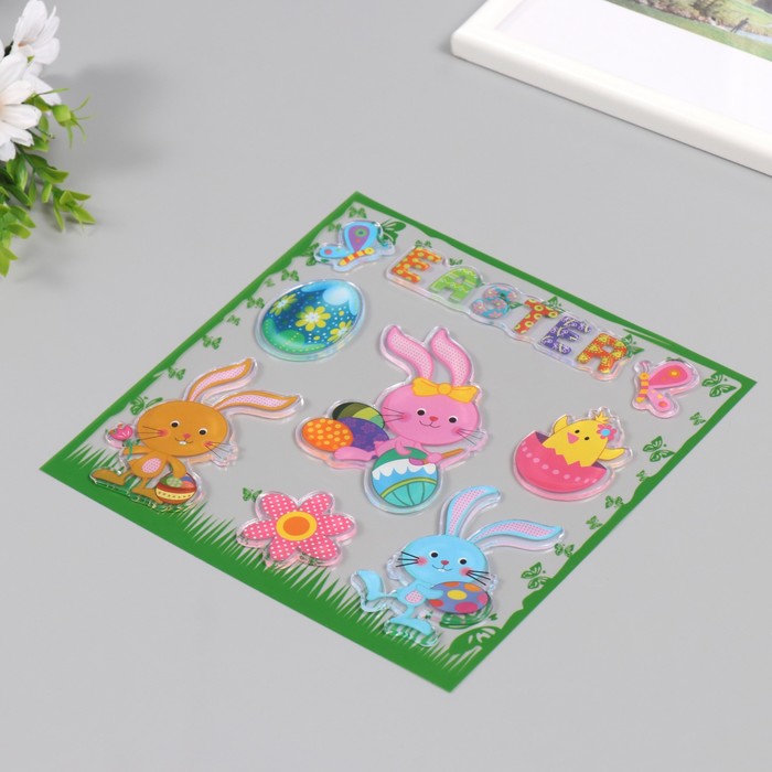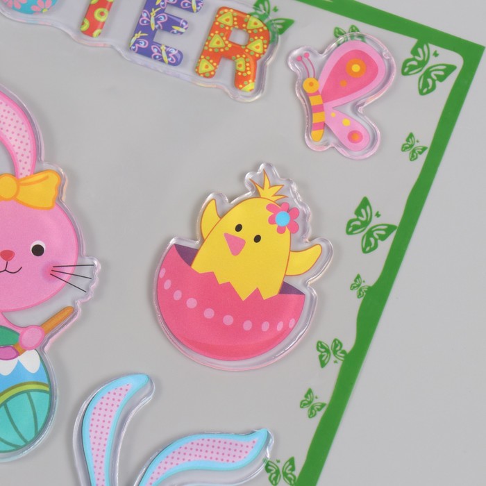 Эти многоразовые пасхальные наклейки на окна создают праздничное настроение в детской комнате. Объёмные фигурки кроликов и цыплят выглядят как маленькие силиконовые игрушки, прилипшие к стеклу. Они легко крепятся и снимаются, не оставляя следов, поэтому украшать окно к празднику сможет даже ребёнок.