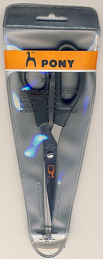 Ножницы общего назначения (универсальные) для рукоделия. Индийская фирма «Needle Industries (India) Limited» - мировой лидер в производстве швейно-вязальных принадлежностей для вязания и рукоделия и игл, известных под торговой маркой «PONY». Отличное качество продукции фирмы PONY основано на высоких технологиях. Ножницы упакованы в красивую и удобную упаковку.
