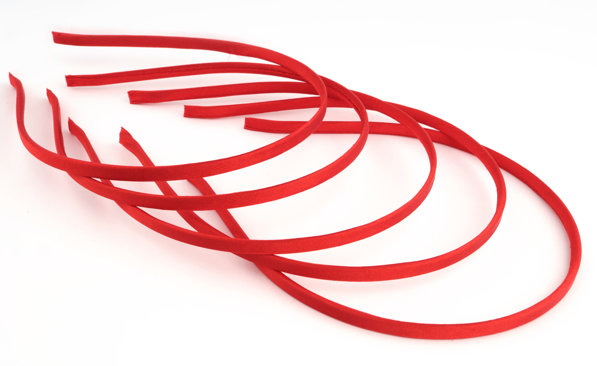 Ободок металл,атласная ткань(красный), 5мм, упак. 10шт