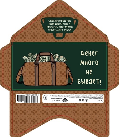 Открытка-конверт 16.8*8.3 см Коричневая сумка с деньгами 539195