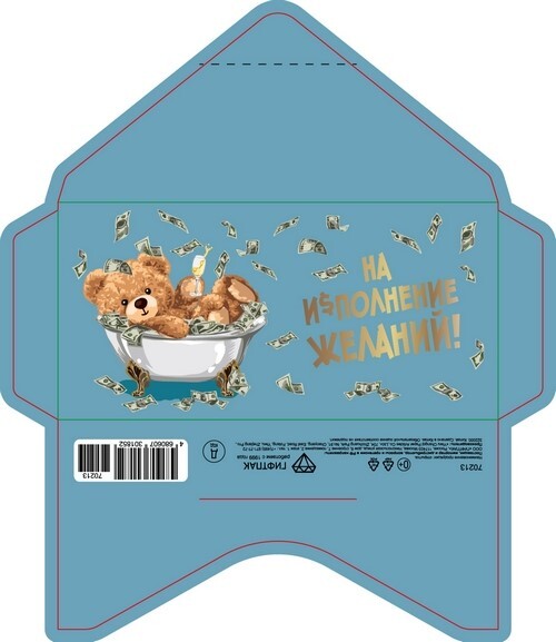 Открытка-конверт 16.8*8.3 см Мишка в ванной с деньгами 539213